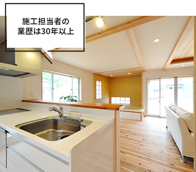 30年以上の経験をもつ職人が、質の高いリフォームを提供。一つひとつのご依頼に対して真摯に向き合い、丁寧でありながら確かな技術で住まいづくりを行います。