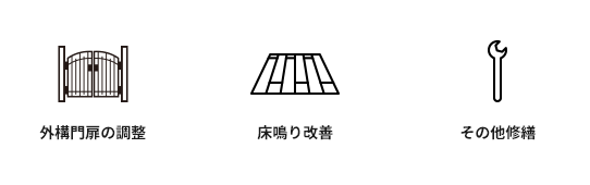 申告があった箇所はもちろん、ほかにも不具合がないか訪問時に確認。新たに資材を購入する場合を除き、基本的にはサービスとして修繕いたしますのでご安心ください。
